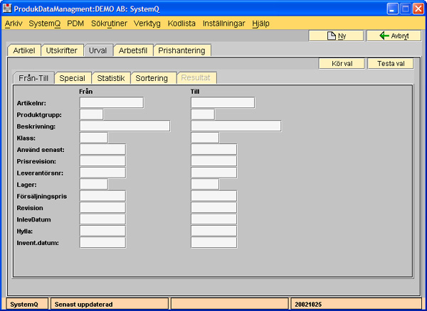 SystemQ har ett gemensamt mycket kraftfullt verktyg för att göra urval i artikeldatabasen