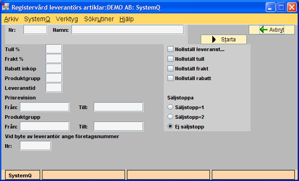 Affärssystem: REGISTERVÅRD LEVERANTÖRSARTIKLAR | |||||